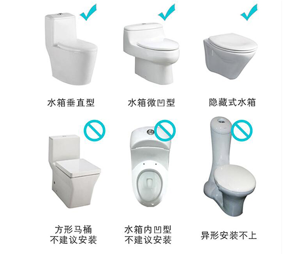 而水箱内凹型或其他形状的马桶,如果无法确认是否可以安装,可以提供照片给品牌客服协助判断的。